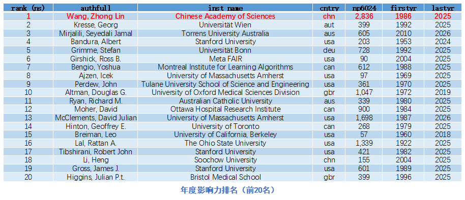王中林院士职业生涯&年度影响力双居世界第1位?Elsevier公布2025年度全球前2%科学家排名